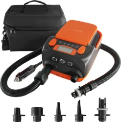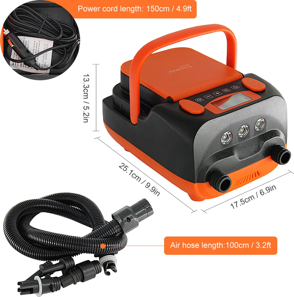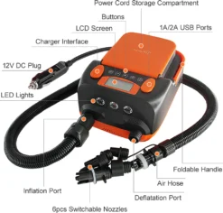 - Kommt mit 6 Duesen fuer die meisten Luftmatratzen, Schlauchboote, Zelte, Stand-Up-Paddle-Boards usw.