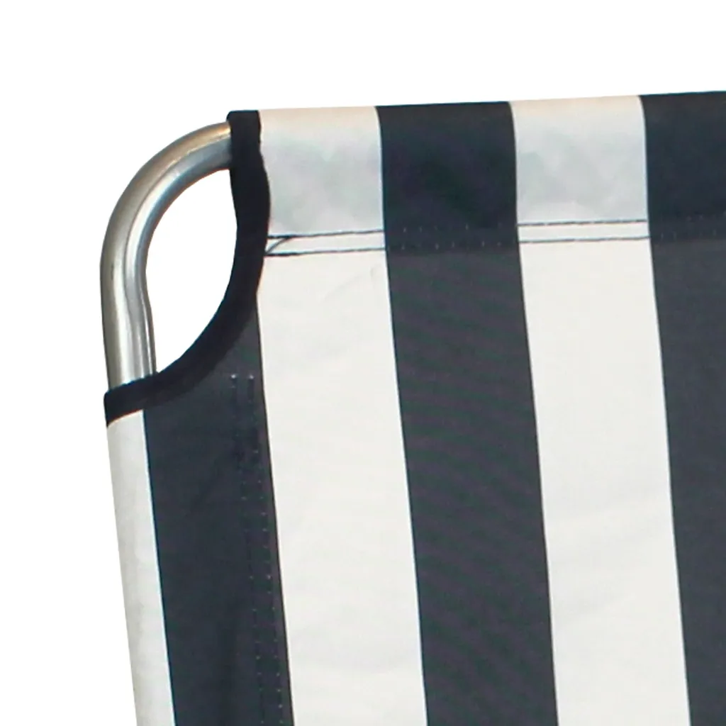 Dieser Campingstuhl lässt sich im Handumdrehen auf- und zuklappen und besitzt ein geringes Eigengewicht. Die Sitz- und Rückenfläche besteht aus einem strapazierfähigen und pflegeleichten Polyestergewebe Weiss / Blau gestreift.Das Gestell ist aus pulverbeschichteten Metall hergestellt. Nach Nutzung lässt sich der Stuhl schnell und mühelos zusammenfalten und anschließend platzsparend lagern. Dieser Faltstuhl ist äußerst praktisch für Haus, Garten und Camping geeignet. Bitte beachten Sie, dass es sich um einen Campingstuhl handelt und somit die Sitzhöhe geringer ausfällt, als bei einem normalen Stuhl.