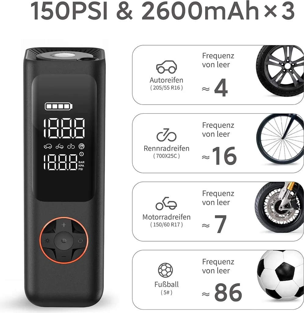 - ????️【Bigger Capacity Battery & Safer BMS Board】Built-in 3×2600mAh 18650 große Kapazität Li-Ionen-Akku-Pack, kombiniert mit BMS-Board besitzt von Dual-Lade-IC-Funktion und Dual-MOSFET-Schutz. QiCYCLE Inflator kann länger arbeiten und muss nicht für eine Pause anhalten. Der voll aufgeladene Inflator kann bis zu 35 Minuten lang ununterbrochen arbeiten und 5 leere Reifen (175/70 R14) aufpumpen. Außerdem hat es Powerbank-Funktion für den Notfall braucht