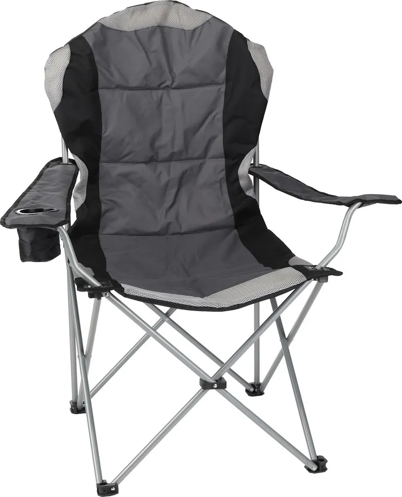 Bequemer Klappstuhl in anthrazit für Camping, Angeln und Strand mit Getränkehalter inklusive Tragetasche