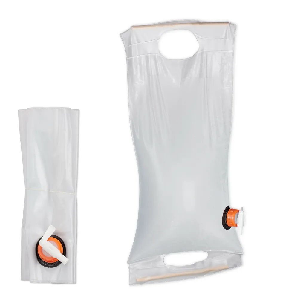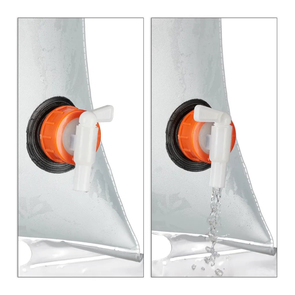 Ob auf Reisen, bei Festivals oder beim Campen: Der rund 10 Liter fassende Faltkanister ist ein starker Mitstreiter für viele sommerliche Outdoor-Aktivitäten. Wenn Sie den Kanister nicht mehr benötigen, falten Sie ihn einfach platzsparend zusammen und verstauen ihn in Rucksack oder Kofferraum. Ein bequemer Transport ist dank der Grifföffnungen an beiden Enden kein Problem. Die Wassermenge regulieren Sie einfach mithilfe des Auslaufhahns, der fest in den Schraubdeckel integriert ist.