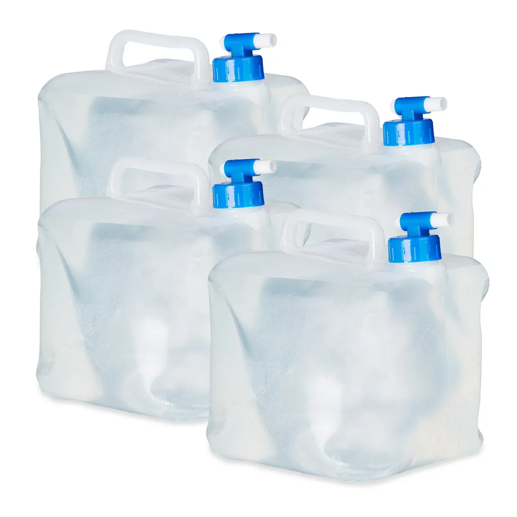 Sommerliche Outdoor-Aktivitäten ohne ausreichenden Wasservorrat können schnell zu einer echten Durststrecke werden. Mit den tragbaren Leerkanistern im 4er Set haben Sie die nötige Trinkwasserreserve bei Camping oder Festivals immer parat. Dabei macht es Ihnen der drehbare Hahn leicht, die gewünschte Wassermenge zu zapfen. Die praktischen Wassertanks lassen sich zudem platzsparend zusammenfalten und so leicht im Kofferraum oder Rucksack verstauen.