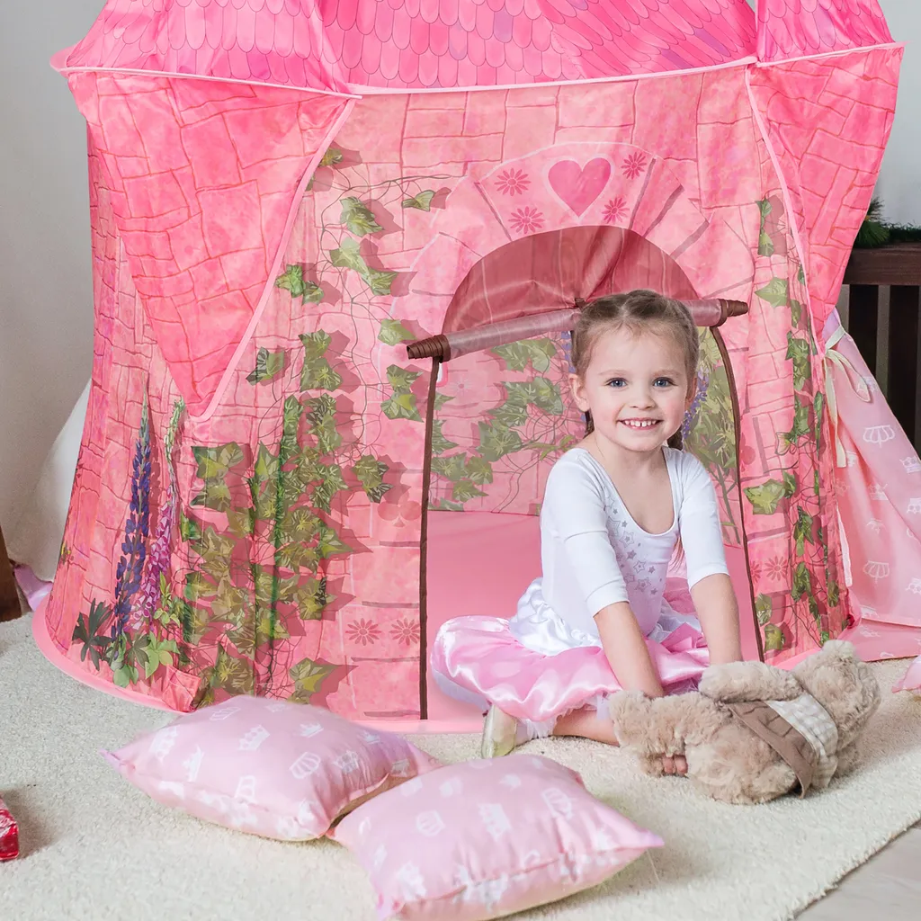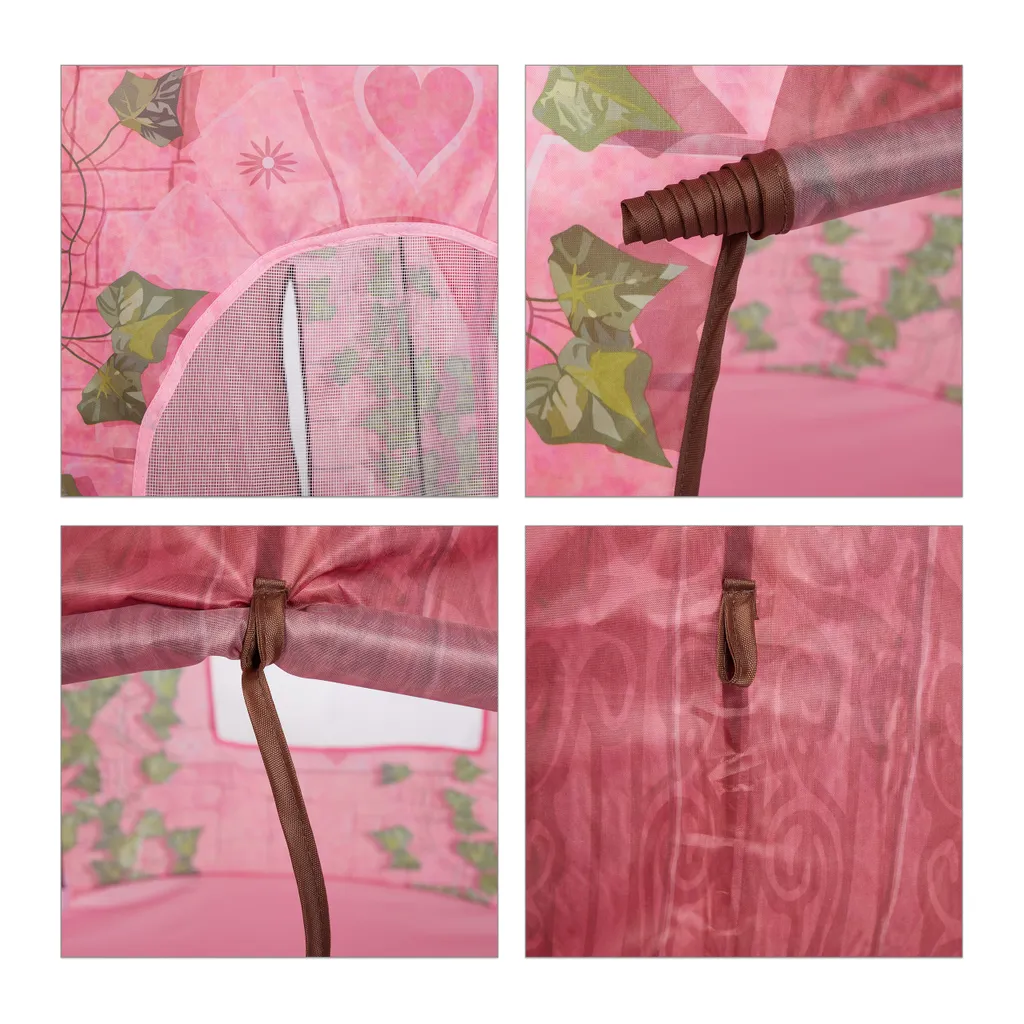 Für kleine Prinzessinnen ab 3 Jahren wird mit diesem zauberhaften Spielzelt im Schloss Design ein Traum wahr. Das Kinderzelt eignet sich perfekt als Kuschel- und Spielhöhle im Kinderzimmer, kann bei schönem Wetter aber auch draußen aufgestellt werden. Das gelingt dank des Pop-Up-Systems im Handumdrehen. Mit den Stangen zum Zusammenstecken wird zudem für ausreichend Stabilität gesorgt. Durch den Eingang können die Kleinen rein- und rauskriechen und 1 Netzeinsatz sorgt für den perfekten Überblick.