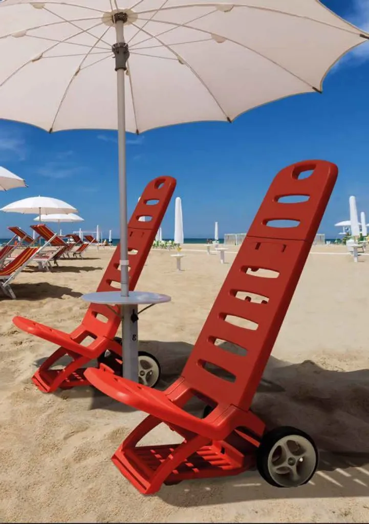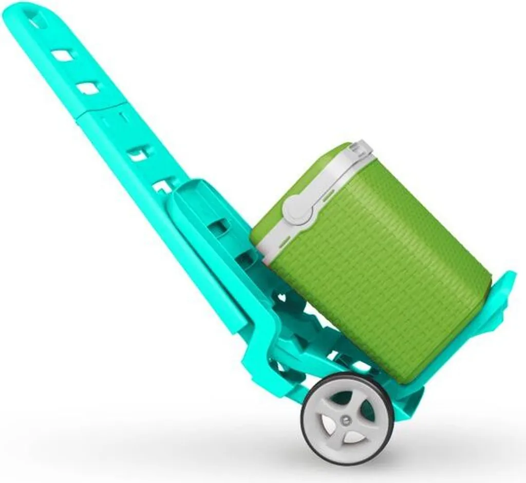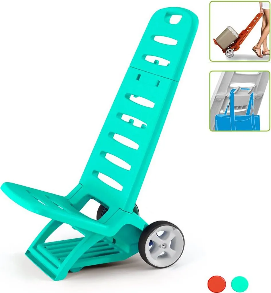 2 in 1 Design kann der Strandstuhl auch als Transport Trolley benutzen, mit beiden breiten Kunststoff Rädern ist der gut geeignet für den Transport von Strand- und Freizeitzubehör.