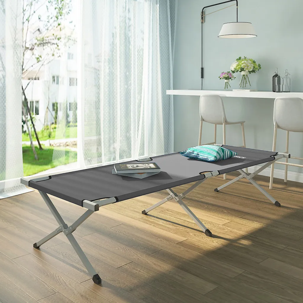 Das Campingbett dient zuhause gut als Gästebett, ist auch der perfekte Begleiter für Ihre Outdoor-Aktivitäten oder zum Übernachten für Notunterkünfte, Erste-Hilfe-Camps oder den Katastrophenschutz