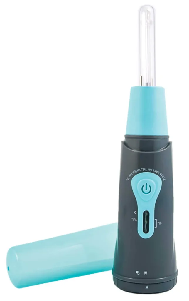 UV-Wasserfilter für bis zu 3000 Anwendungen. Einfach in klares Wasser halten, Knopf drücken, umrühren und je nach Wassermenge ggf. wiederholen. Der Betrieb erfolgt mit AA-Akkus.