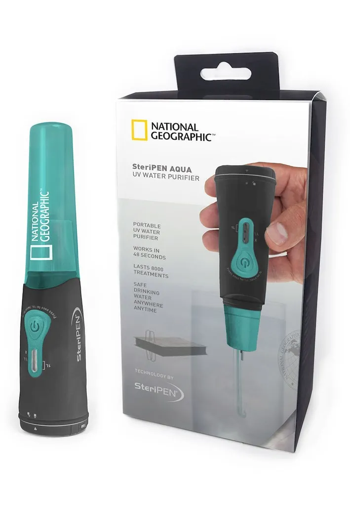 - SteriPEN Wasserentkeimer Aqua – entfernt 99, 9 % der Protozoen (einschließlich Giardia, Cryptosporidia), Bakterien, Viren