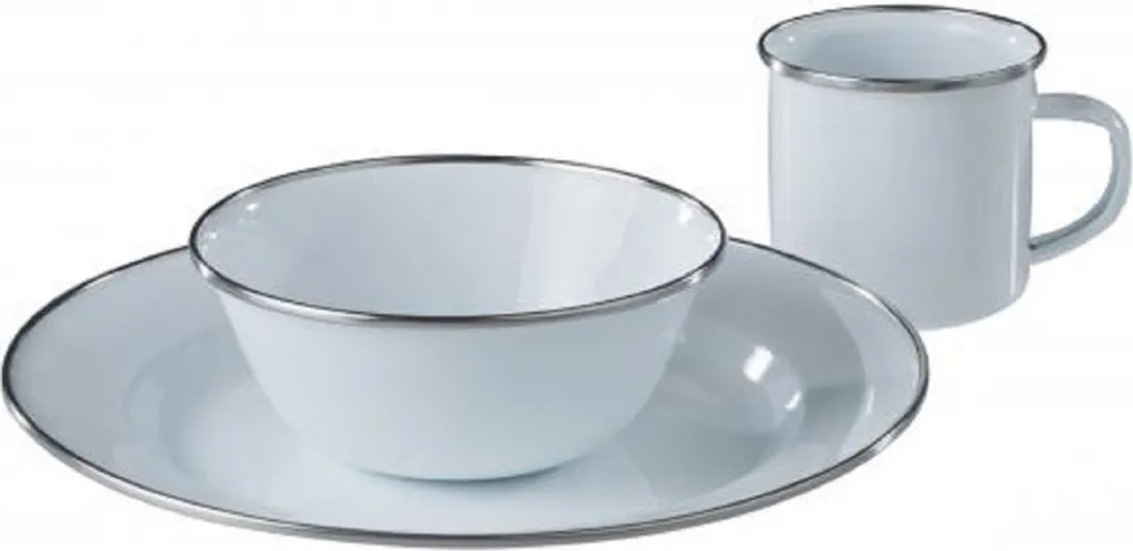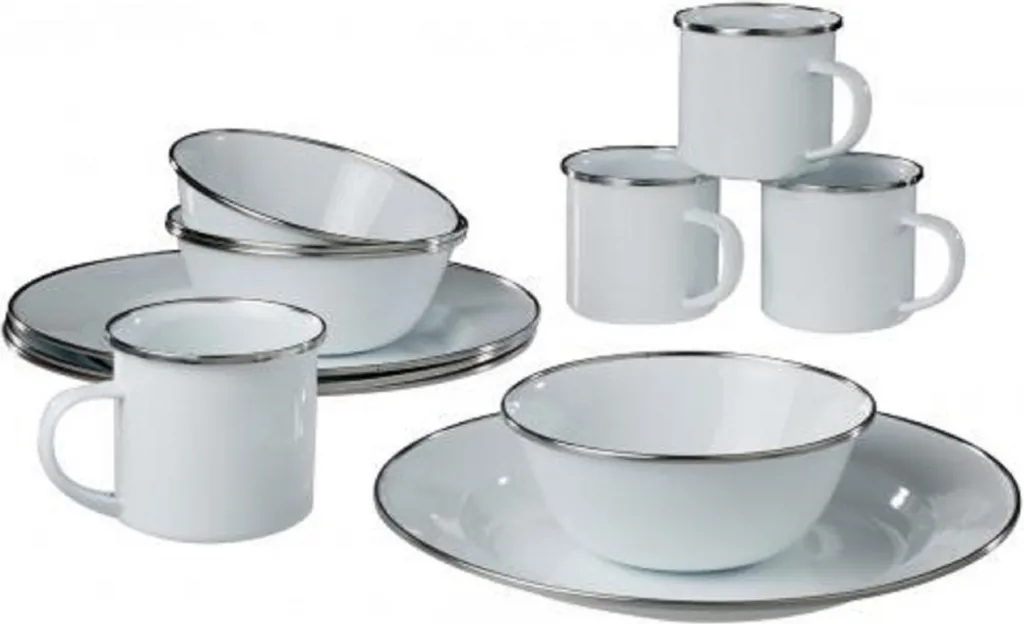 - Essgeschirr (12-teilig) für 4 Personen aus emaillierten Stahl