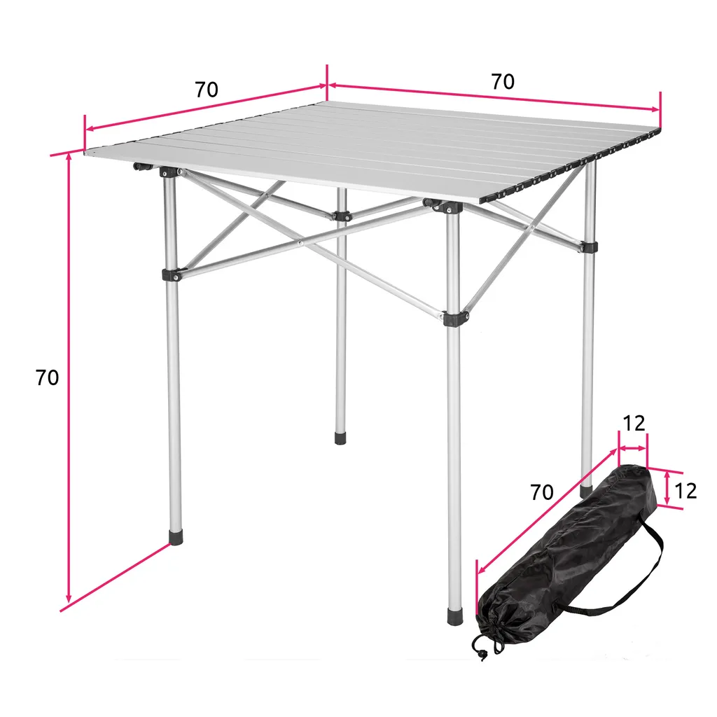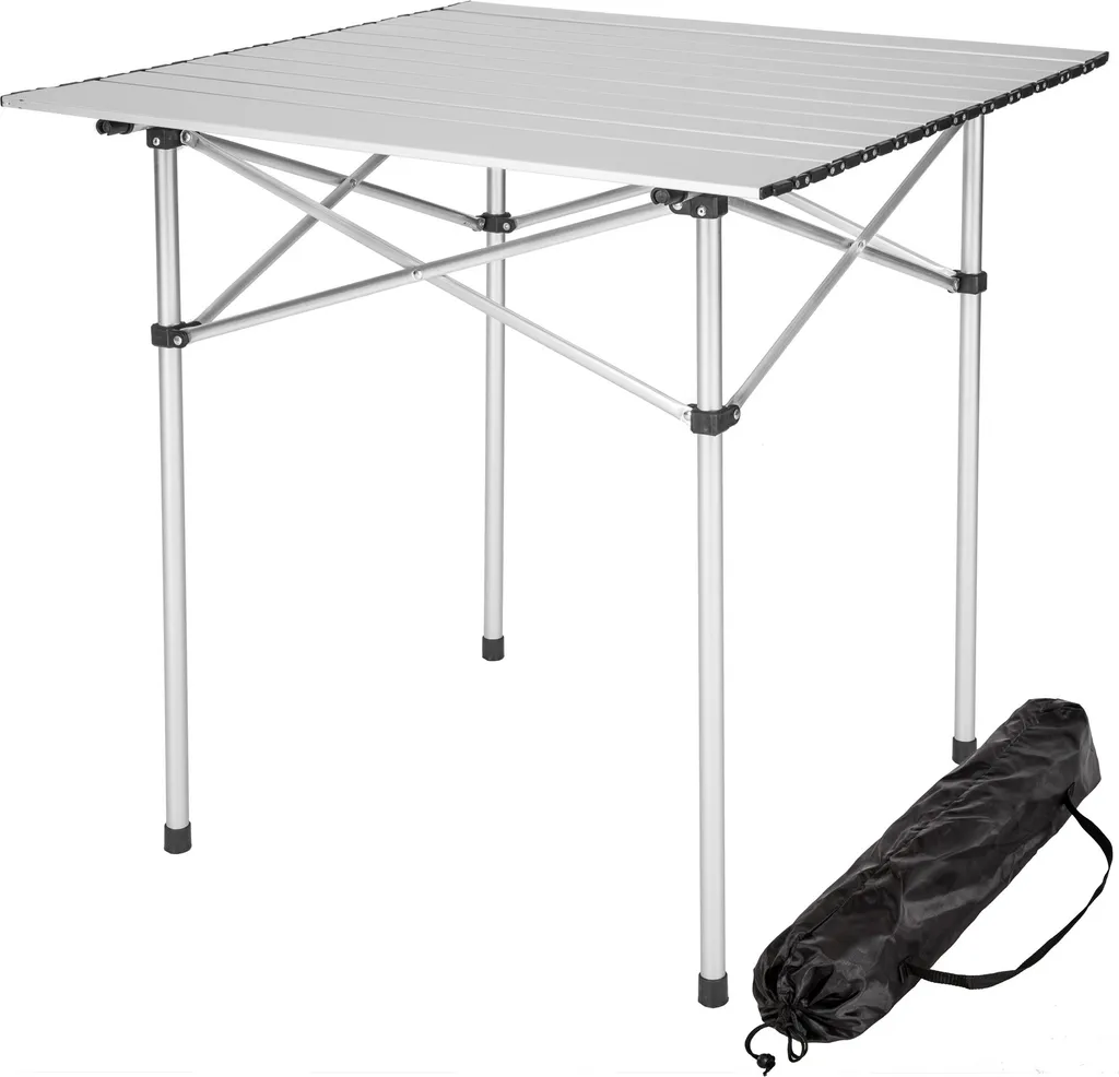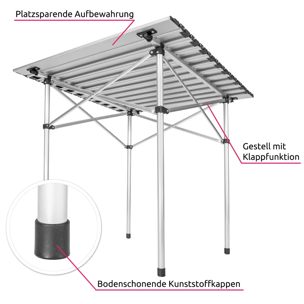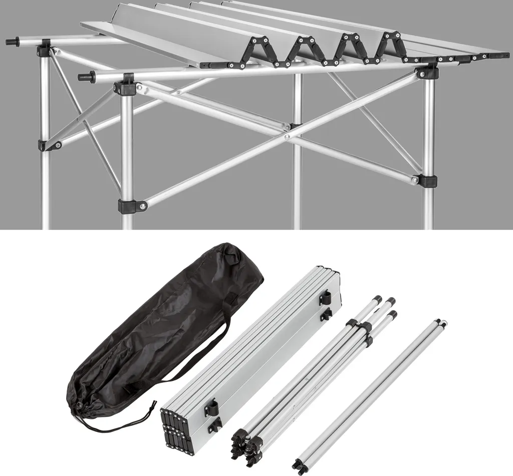 Dieser praktische Klapptisch aus Aluminium ist vielseitig einsetzbar. Ob im Garten, für den Strand, Festivals oder Campingausflüge oder wo auch immer ein Tisch leicht zu transportieren oder schnell einsatzbereit sein soll. Der Campingtisch ist dank des praktischen Klappgestells klappbar und die Oberflächenlamellen im Handumdrehen aufgebaut, deswegen eignen sich Klapptische besonders für den spontanen Ausflug ins Grüne. In der mitgelieferten Tragetasche kann der Tisch platzsparend aufbewahrt und besonders einfach transportiert werden. Dieser Klapptisch darf in keinem Haushalt fehlen!