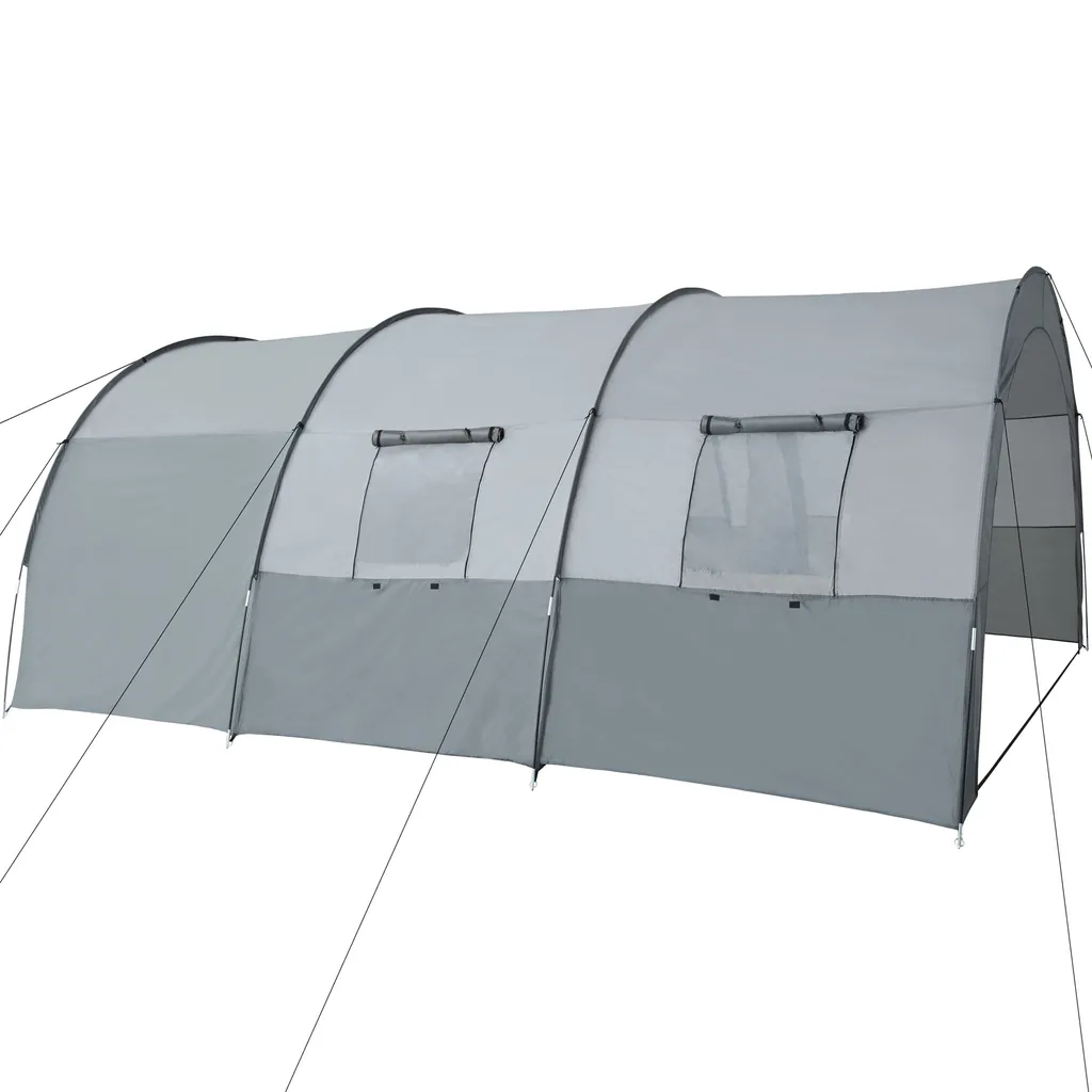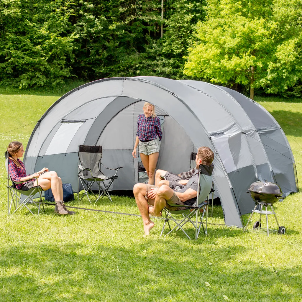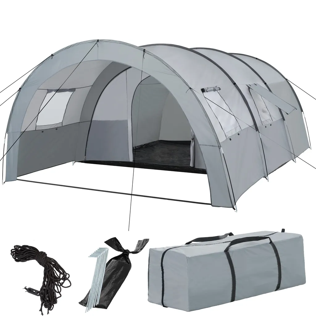 Unser großes Tunnelzelt für bis zu 6 Personen ist ein Traum für jeden Campingfreund! Das große, komfortable Tunnelzelt ist ideal für Familien oder kleine Gruppen. Das überdachte Vorzelt lädt zum Entspannen im Schatten ein und bietet außerdem Stauraum für Camping-Utensilien. Das Zelt lässt sich in nur wenigen Minuten auf- und abbauen und ist trotzdem äußerst stabil. Kurz gesagt: Das Familienzelt ist der ideale Reisebegleiter fürs Wochenende im Freien!
