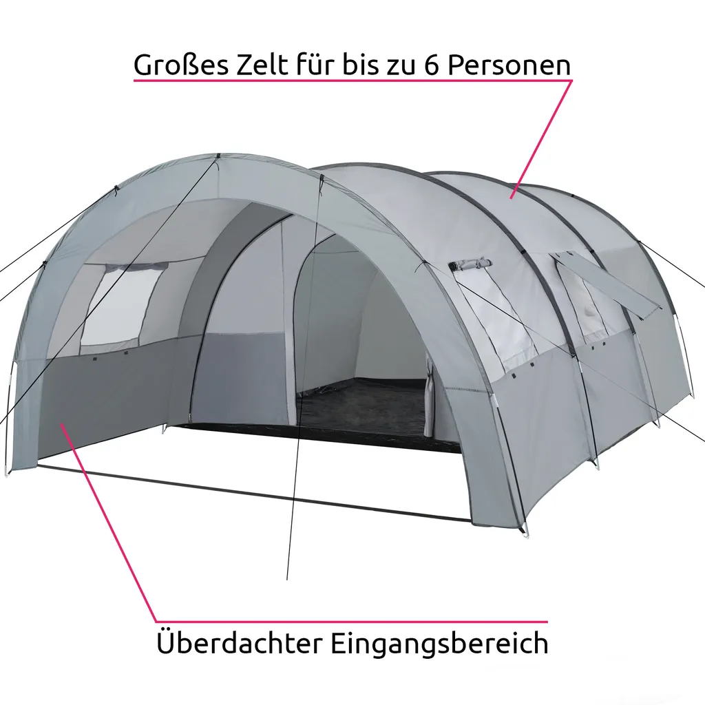 - Sehr großes Zelt für bis zu 6 erwachsene Personen