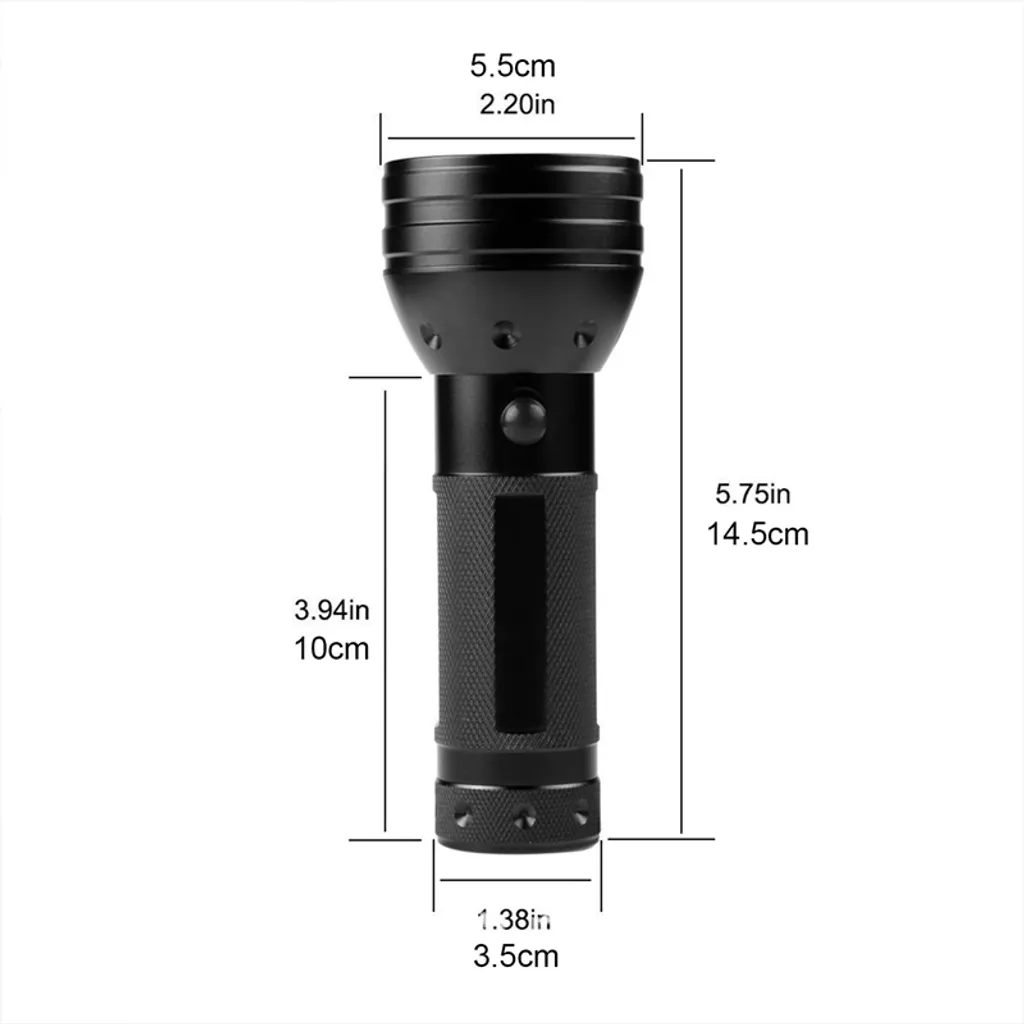 - Diese große UV-Taschenlampe mit 51 UV-LEDs ermöglicht es Ihnen, einen viel größeren Bereich abzudecken, ohne die Intensität des UV-Lichts zu verlieren.