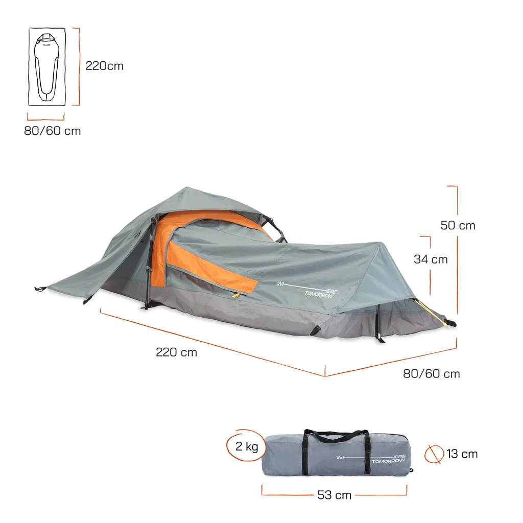 Ultraleichtes Zelt von Where Tomorrow, zu verschiedensten Zwecken einsetzbar: Beim Camping, Wandern, Trekking, auf Reisen, am Strand, im Garten, auf Festivals oder beim Ausflug zum Campingplatz