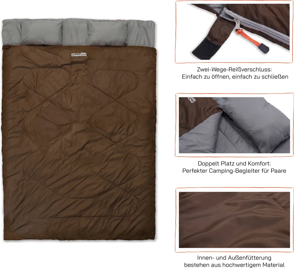 Doppelt hält besser! Gestalte deinen nächsten Camping-Trip noch komfortabler – egal ob alleine, mit dem Partner oder dem Nachwuchs. In unserem Doppelschlafsack findet jeder genügend Platz.