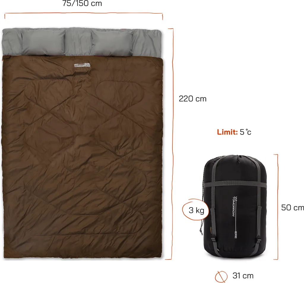 Where Tomorrow Doppelschlafsack 190+30 x 150 cm Braun